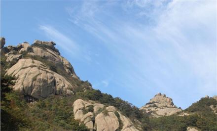 中蓮花峰在上蓮花峰北,海拔937米。主峰突出,峰頂絕險(xiǎn),小峰簇?fù),氣?shì)雄偉。