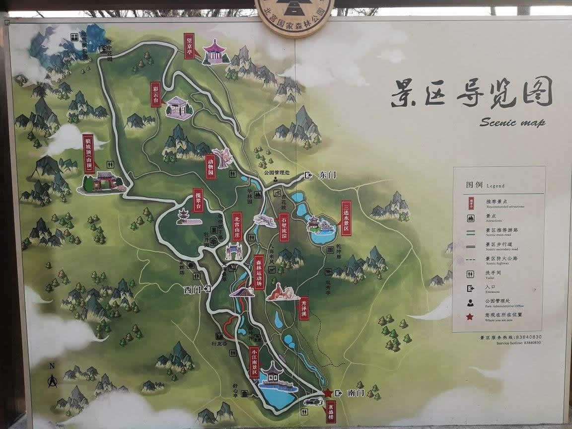 北京北宮國家森林公園,位于北京市豐臺區(qū)西北部山區(qū),距北京市中心20公里,是丘陵型自然風(fēng)景區(qū)。北宮因帝王憩地而得名。公園始建于2002年10月,2005年12月被國家林業(yè)局正式批準(zhǔn)為國家級森林公園。公園總面積9.145平方公里,由東部、西部和中部三大景區(qū)和北宮山莊、茗盛樓兩組近10000平方米的配套設(shè)施組成。園內(nèi)有12處亭、廊、閣、塔等人文景觀,以及芳澤溪、小江南、楓林路、樺林溝等15處景點(diǎn)。綠化美化面積3000畝,優(yōu)質(zhì)樹種21種3.6萬株,野生花卉30余種5萬余平方米,園內(nèi)植物種類達(dá)到253種,形成了首都西部生態(tài)建設(shè)中的亮點(diǎn)。