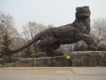 2009年,在獅虎山的北側(cè)豎起一座虎的銅雕,由雕塑藝術大師袁熙坤先生歷時兩年創(chuàng)作而成,名為“山君”。老虎長19.48米、高9.18米、重30噸。這也是北京動物園里第一座大型動物雕塑。