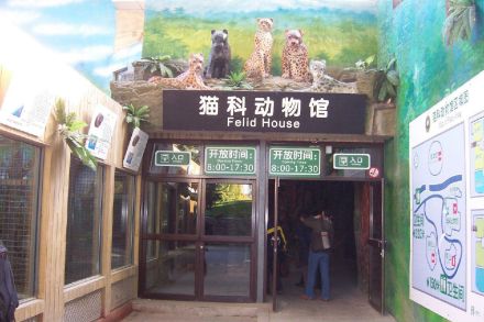 在館舍布置上,根據(jù)各種貓科動物的生活習性和飼養(yǎng)方式,一層設有八間獸舍和運動場,主要飼養(yǎng)豹貓、獰貓、猞猁、美洲豹、美洲獅、黑豹;二層設有四間獸舍和運動場,主要飼養(yǎng)華南豹、朝鮮豹,每間獸舍都有相對應的室外運動場。并單獨設立了不對游人開放的三間治療獸舍和室外運動場,作為動物的休養(yǎng)飼養(yǎng)獸舍。在場館的南側(cè)單獨設有獵豹露天展區(qū)。