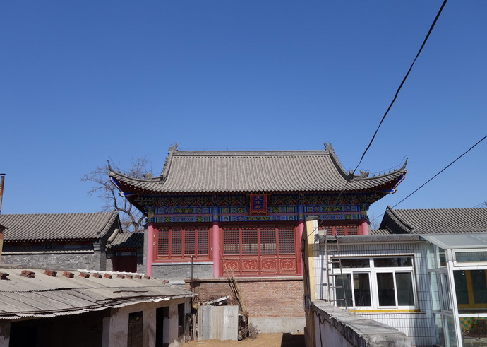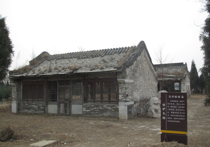 沿村娘娘廟 沿村娘娘廟始建于明代,清代中期重修,2011年在拆除村辦企業(yè)大棚后顯露出來。依地勢坐南朝北。原為四合式,由于時代的變遷,周圍建筑已不存,現(xiàn)僅存前、后兩進(jìn)殿宇,前殿為硬山筒瓦卷棚頂,前后出廊;后殿為硬山筒瓦大式,前出廊。兩進(jìn)殿均為石望板頂,廊心墻處為軟心,梁檁彩繪及壁畫仍清晰可見。