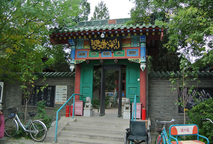 張家灣清真寺,位于張家灣鎮(zhèn)西街。中軸線(xiàn)上主體建筑禮拜殿,勾連搭四卷,硬山簡(jiǎn)瓦,規(guī)模較大。一三兩卷為箍頭脊,二卷為調(diào)大脊,大吻壯觀,小獸玲瓏。第四卷明間為窯殿,四角攢尖,綠琉璃寶頂高聳天空,次間則為卷棚頂,別具一格。博古彩畫(huà)精美,西頭磚雕別致,嵌山方圓木窗活潑,井口天花鮮艷整潔,南北配殿與禮拜殿之間有海棠柱曲廊相連。結(jié)構(gòu)嚴(yán)謹(jǐn),錯(cuò)落有致。