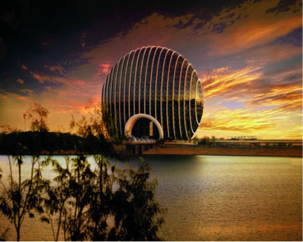 北京日出東方凱賓斯基酒店:建筑外形宛如一輪冉冉升起的太陽(yáng),象征著和諧統(tǒng)一,故名為日出東方酒店。從側(cè)面看,酒店建筑是扇貝的形狀,扇貝在中國(guó)文化里代表了財(cái)富;配合酒店建筑正面的圓形“旭日東升”寓意,也代表著中國(guó)的蓬勃發(fā)展。如果從空中俯瞰,酒店的裙樓形狀酷似“祥云”,也代表了中國(guó)文化中“彩云追日”的浪漫寓意。