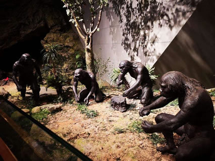 周口店北京人遺址博物館系統(tǒng)地向我們介紹了60萬年前的“北京人”、10萬年前的“新洞人”、18000年前的“山頂洞人”的生活環(huán)境、生活狀況。序廳正面為龍骨山立體模型,展柜中擺放著周口店地區(qū)從4億年前到1億年前的各種巖石標(biāo)本,反映了該炮區(qū)滄海桑田的地質(zhì)變化過程。