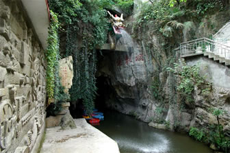 老龍洞位于南山、南泉兩大風(fēng)景區(qū)之間,洞深1379米,寬約7-10米,最寬處30米,高約15-30米,洞內(nèi)常年平均氣溫18℃。洞口面向西南,高寬各5米,如龍口大張;入口處狹窄,似龍咽喉,泉流涌出終年不竭。