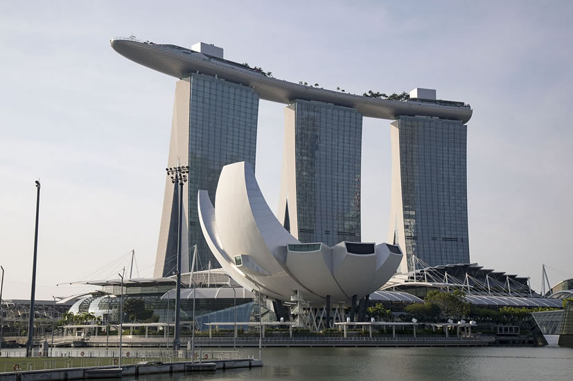 新加坡金沙娛樂城 新加坡金沙娛樂城位于濱海灣的新加坡金沙娛樂城設(shè)有賭場、歌劇院、藝術(shù)科學(xué)博物館、會(huì)議中心與展覽設(shè)施、零售商和多樣化的餐館等,共6大建筑系列。在高達(dá)55層樓的酒店內(nèi),擁有2561個(gè)房間。為酒店冠上榮耀之光的,是位于第57樓的金沙空中花園,這座占地一公頃的空中綠洲將匯集蔥蘢的綠蔭、雅致的花園,甚至一座無邊泳池。