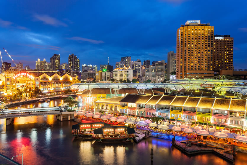 克拉碼頭 克拉碼頭位處新加坡河河畔,克拉碼頭昔日是個(gè)繁忙的貨物起卸岸及貿(mào)易中心,在改造計(jì)劃下,悉數(shù)變作餐館及酒吧。原來的60家倉庫和商店經(jīng)發(fā)展已成為200家商店、餐廳、酒吧和娛樂場所。駁船碼頭在克拉碼頭的下游,舊時(shí)的倉庫已經(jīng)改頭換面,這里至少有35家風(fēng)格各異的酒吧和餐廳,也是市區(qū)沿河最具吸引力的娛樂場所之一。
