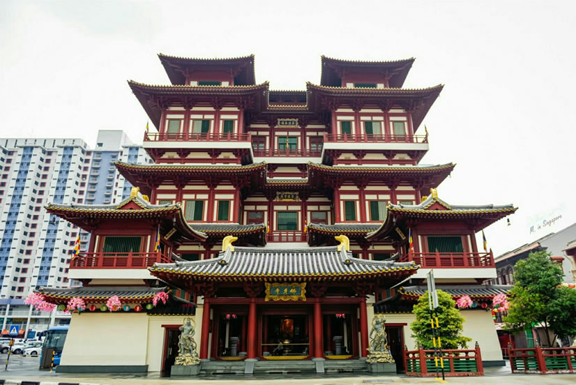 新加坡佛牙寺 新加坡佛牙寺坐落于牛車水碩莪街,樓高五層,全按中國唐代佛寺風(fēng)格建筑而成。第一層是山門、鐘樓、鼓樓、觀音殿、百龍殿。第二層是阿蘭若藏經(jīng)閣及展覽廳、文殊殿,夾層樓是蓮芯茶坊、地藏殿、法堂、戒光堂、諸山長老德像紀(jì)念館。第三層是普賢殿、龍華院—佛教文物館。第四層是靈光殿、佛牙舍利金塔。第五層頂樓有萬佛閣、毗盧遮那大光明經(jīng)咒轉(zhuǎn)經(jīng)輪藏、萬福光明燈和胡姬花園。