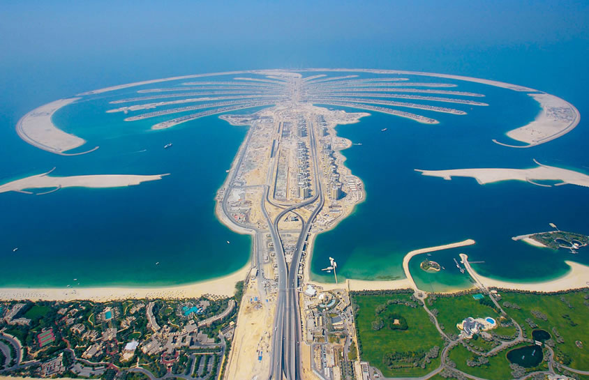棕櫚島 棕櫚島是建立在迪拜的三座人工群島的總稱。它分為朱美拉棕櫚島、杰貝阿里棕櫚島、迪拉人工島。 每個(gè)島上都有大量的別墅、公寓發(fā)售,為整個(gè)迪拜酋長(zhǎng)國(guó)增添了諸多供不應(yīng)求的海灘。耗資140億美元打造而成的迪拜棕櫚島被譽(yù)為“世界第八大奇跡”。 每座島嶼包括三部分:“樹干”、“樹冠”和新月型圍壩。島上還將種植12000棵棕櫚樹,這些樹苗正在位于朱梅拉的苗圃里栽培。整座島嶼就是一個(gè)巨大的避暑勝地和游玩天堂,上面擁有2400套海邊住房,可以入住5000人。另外,還有運(yùn)動(dòng)場(chǎng)、健身房和電影院等設(shè)施。