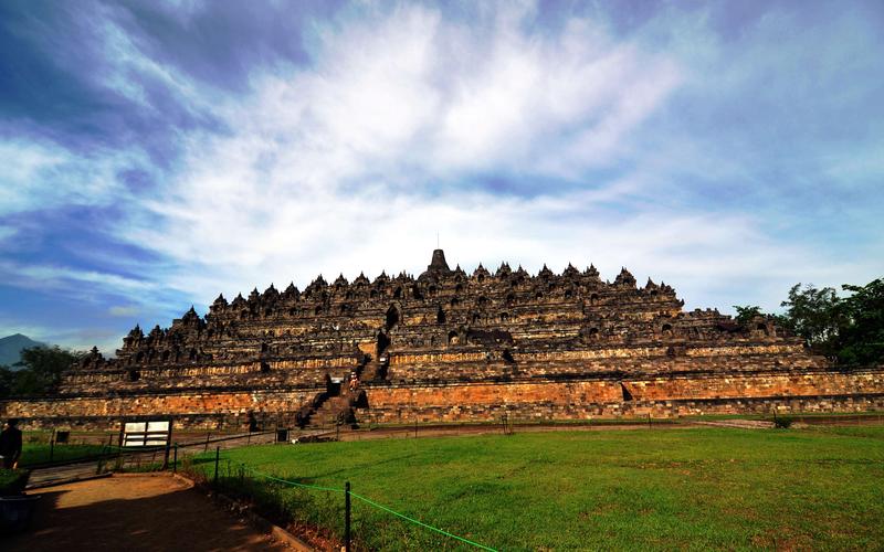 婆羅浮屠寺廟群 婆羅浮屠位于東南亞的印度尼西亞,大約建于公元750年至850年間,由當(dāng)時(shí)統(tǒng)治爪哇島的夏連特拉王朝統(tǒng)治者興建。“婆羅浮屠”這個(gè)名字的意思很可能來自梵語"Vihara Buddha Ur",意思就是“山頂?shù)姆鹚?rdquo;。婆羅浮屠大約建于九世紀(jì),公元1006年因火山噴發(fā)而被埋入地下。直到806年后的1812年被英國人萊佛士發(fā)現(xiàn),婆羅浮屠得以重見天日。與中國的長城、印度的泰姬陵、柬埔寨的吳哥窟并稱為古代東方四大奇跡。 婆羅浮屠是作為一整座大佛塔建造的,從上往下看它就像佛教金剛乘中的一座曼荼羅,同時(shí)代表著佛教的大千世界和心靈深處。整個(gè)建筑分為三層,基座是五個(gè)同心方臺(tái),呈角錐體;中間是三個(gè)環(huán)形平臺(tái),呈圓錐體;頂端是佛塔。四周圍墻和欄桿飾以淺浮雕,總面積2500平方米;圍繞著環(huán)形平臺(tái)有72座透雕細(xì)工的印度塔,內(nèi)有佛龕,每個(gè)佛龕供奉一尊佛像。婆羅浮屠寺廟群在聯(lián)合國的援助下于1970年得以重建,現(xiàn)已經(jīng)成為印度尼西亞最著名的景點(diǎn)之一。