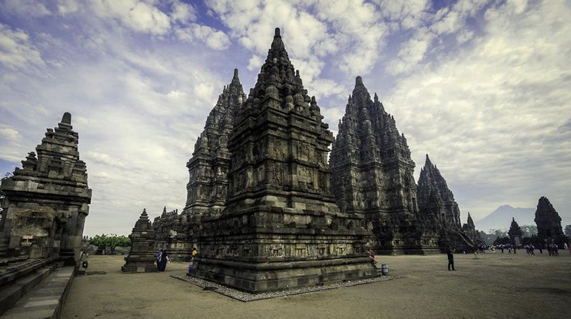 巴蘭班南 巴蘭班南(Prambanan)位于日惹市郊,被譽(yù)為爪哇最美麗的印度教寺廟古跡,亦是印度尼西亞最大最美的印度教寺廟,是記錄印度尼西亞人祖先燦爛文化的載體,與臨近的婆羅浮屠一起被列入聯(lián)合國世界文化遺產(chǎn)。 巴蘭班南寺廟群由240座廟宇組成,大部分已經(jīng)淪為一堆瓦礫,但一些主要的廟宇在經(jīng)歷了天災(zāi)人禍的滄桑變遷后,在人們的努力下得以重建,又煥發(fā)出昔日的風(fēng)采。 巴蘭班南寺廟共有8個(gè)圣殿,其中三個(gè)主殿分別祭祀著濕婆、毗濕奴和羅摩這三位印度教中的主神。中心院落里有三個(gè)主殿。濕婆殿高為46.5米,里面是濕婆的妻子杜爾加的神像,也是最高的神殿。濕婆殿的北側(cè)是維斯奴廟,南側(cè)是婆羅吸摩廟,前面是楠迪廟。在毗濕奴和婆羅吸摩廟的前面是瓦哈諾廟,阿皮特廟位于北側(cè),其南側(cè)與廟宇相接。在主廣場(chǎng)每一個(gè)大門前面的東西兩側(cè)有四個(gè)克利爾廟;而在主廣場(chǎng)的四個(gè)角上均各有一個(gè)小廟宇。