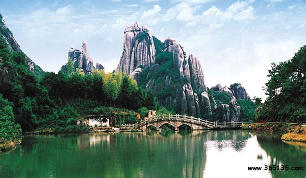 國(guó)家重點(diǎn)風(fēng)景名勝區(qū)、世界地質(zhì)公園一一太姥山,位于閩浙邊界的福建省福鼎市境內(nèi),北鄰浙江溫州118公里,南距福建福州200公里,雄峙于東海之濱,山海相依、傲岸秀拔,以 “山海大觀”稱(chēng)奇。傳說(shuō)東海諸仙常年聚會(huì)于此,故有“海上仙都”的美譽(yù)。它北望浙江雁蕩、西眺福建武夷,三者成鼎足之勢(shì),閩人稱(chēng)武夷、太姥為雙絕,浙人視雁蕩、太姥為昆仲, 構(gòu)成閩越三大名山。 太姥山是一處以花崗巖峰林巖洞為特色,融山、海、川、島和人文景觀于一體的風(fēng)景旅游勝地,觀賞面積92.02平方公里,保護(hù)面積200平方公里,擁有太姥山岳、九鯉溪瀑、福瑤列島、晴川海濱四大景區(qū)和瑞云畬寨、冷城古堡、翠郊古民居三處獨(dú)立景點(diǎn)。旅游資源有武夷、雁蕩山水之秀麗;有黃山、泰山云霧之奇幻;有嶗山、三亞海景沙情;有普陀、武當(dāng)佛蹤道跡。游人就近便可登山、探洞、戲水、游島、漂流……尋覓古剎幽遠(yuǎn),領(lǐng)略畬寨風(fēng)情,一舉多得。