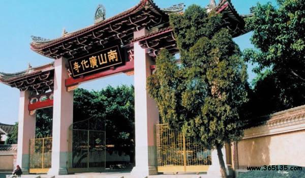 南山廣化寺:座落在城南鳳凰山。現(xiàn)行建筑群是清光緒初年依舊制重修的,從20世紀(jì)80年代開始,進(jìn)行了大規(guī)模的擴(kuò)建。山門照壁上有中國佛教會(huì)已故會(huì)長趙樸初題寫的“莊嚴(yán)國土,利樂有情”。廣化寺占地3.2萬多平方米,建筑物面積1.7萬平方米。踏入山門,沿著中軸線建筑拾級(jí)而上,全長385米。依次是照壁、牌坊、山門、放生池、彌勒殿(天王殿)、大雄寶殿、法堂(上為藏經(jīng)閣)、臥佛殿(下為祖堂);兩側(cè)翼建有寬敞的石柱廊廡,東側(cè)次第為東羅漢殿、鐘樓、五觀堂、伽藍(lán)殿、尊客堂、水云鄉(xiāng)、圓通門、溪聲閣;西側(cè)次第為西羅漢殿、鼓樓、學(xué)戒堂、祖師殿、凈行堂(念佛堂)、煙霞窟、方丈室、看山樓。寺后東西兩角的最高處,分別聳立著觀音閣和小南山。南山上有幾十株不知年代的蒼松翠柏。