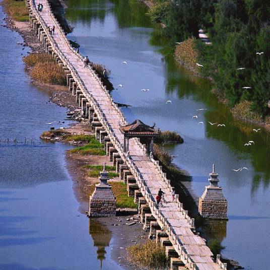 洛陽橋,曾用名“萬安橋”,在萬安橋(洛陽橋)尚未修建之時,這里原有古渡口——萬安渡(亦名洛陽渡),故名。洛陽橋是現(xiàn)存最早的跨海梁式石橋,是中國福建省泉州市境內(nèi)連接臺商投資區(qū)和洛江區(qū)的一座橋梁,位于洛陽江水道之上,也是著名的跨海梁式大石橋,素有“海內(nèi)第一橋”之譽(yù),是古代“四大名橋”之一。