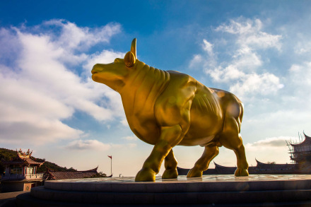 重修的祖殿東側(cè)小山坡上有頭福光萬丈的金牛,游客沿花紋元素登高臺階可得“福祿壽喜”祝福,金牛底座設(shè)置成轉(zhuǎn)盤,游客可根據(jù)自己的吉時轉(zhuǎn)動牛的方向,再圍繞金牛轉(zhuǎn)行,可完成“牛轉(zhuǎn)乾坤,人轉(zhuǎn)錢來”的祈福體驗。