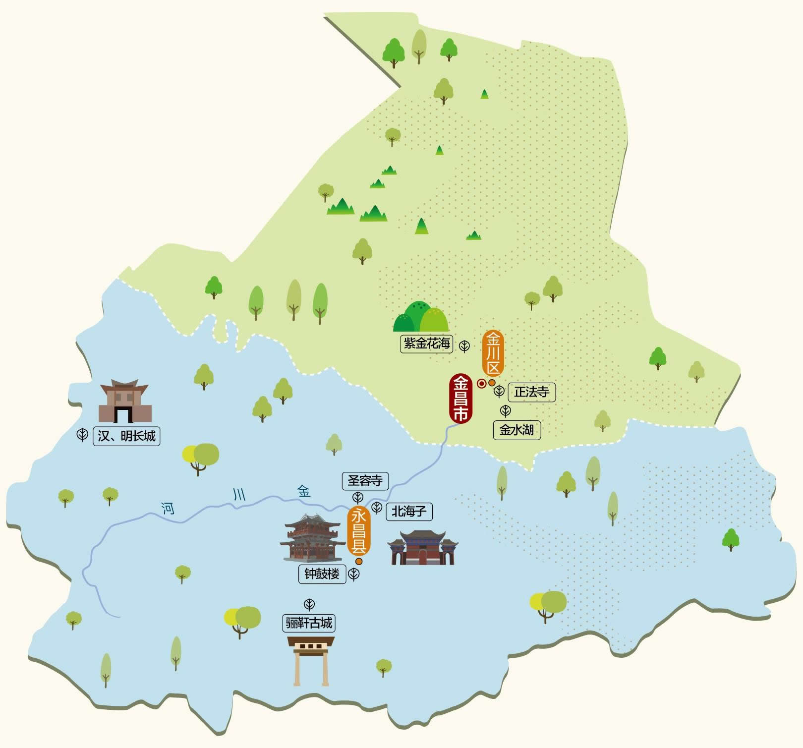 金昌市轄1個區(qū)、1個縣: