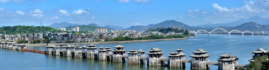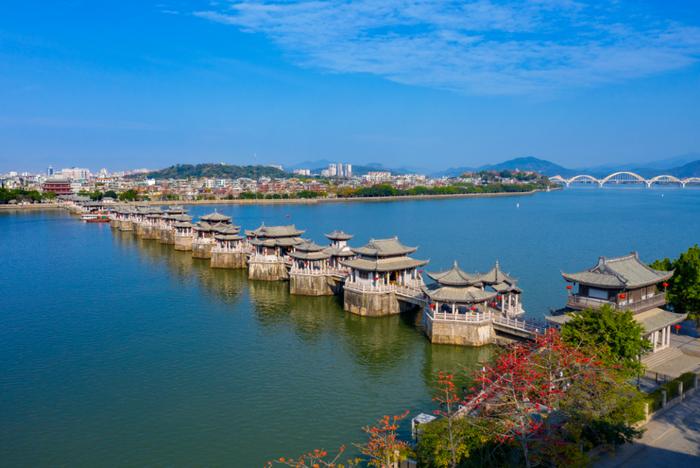 廣濟(jì)橋,即潮州廣濟(jì)橋,古稱康濟(jì)橋、丁侯橋、濟(jì)川橋,俗稱湘子橋,又稱潮州湘子橋,中國四大古橋之一,中國四大名橋之一 [16],被橋梁專家茅以升譽(yù)為“世界上最早的啟閉式橋梁”。廣濟(jì)橋位于廣東省潮州古城東門外,橫跨韓江,聯(lián)結(jié)東西兩岸,集梁橋、浮橋、拱橋于一體,為古代廣東通向閩浙交通要津,是潮州八景之一,是潮州文化的歷史地標(biāo)、全國重點(diǎn)文物保護(hù)單位,國家AAAA級景區(qū)。