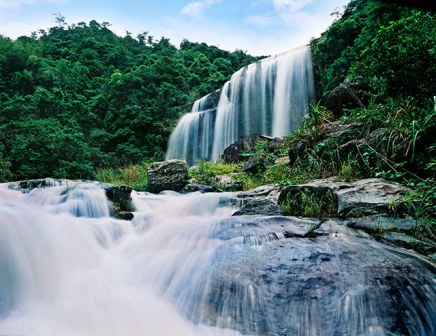 黃滿寨瀑布群旅游區(qū)是國家4A級(jí)旅游景區(qū),位于廣東省揭陽市揭西縣。黃滿寨瀑布群旅游區(qū)自上而下共分五級(jí):一級(jí)是寬82米、落差56米的飛虹瀑布,三股水流分別從頂端飛懸而下,盛水時(shí)節(jié),更是連成一片,形若貴州黃果樹瀑布。繼續(xù)向前,下行約百米又形成銀河崆瀑布,飛瀑撞擊巖石。沿水往下是落差約120米的落九天瀑布,兩邊巖石高起。在下游是三疊谷瀑布,水流在三個(gè)落差各6米的斷崖處唱陽關(guān)三疊,三個(gè)瀑布錯(cuò)角相連。最下為第五級(jí)瀑布斗方崆瀑布。黃滿寨瀑布群景區(qū)所在的山谷比較幽深,山間林木茂盛,瀑布群鑲嵌在深山峽谷中。