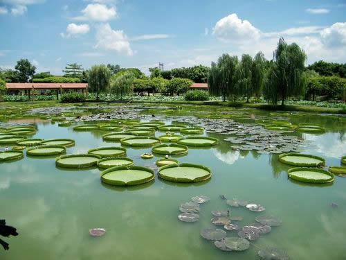 荷花園內(nèi)可觀賞到480個珍稀的荷花品種,其中有太空培育的“太空蓮”、遼寧省出土的 “古代蓮”等珍稀品種,數(shù)十個睡蓮品種,包括從臺灣引進的四季花開的既可觀賞又可食用,同時還有較高的藥用價值的香睡蓮品種,以及各種罕有的水生植物。還有直徑達(dá)1.98米,可以承重40公斤的王蓮、以及形態(tài)萬千的數(shù)百個水生花卉品種。更種植了近100種各式各樣的奇瓜異果,更有直徑60公分,重達(dá)85公斤的巨型大南瓜、開花機率僅為十萬分之一的“并蒂蓮”奇觀,每年均數(shù)次競放荷花世界爭妍斗麗。并按個同功能劃分八大區(qū):文化廣場、中心 區(qū)、品種觀賞區(qū)、王蓮和睡蓮區(qū)、飲食娛樂區(qū)、生產(chǎn)科研育種區(qū)、籽 蓮區(qū)等組成。您可以乘車或徒步游覽景區(qū),也可以蕩舟在荷花叢中, 采摘蓮于、蓮藕,別有一番情趣。