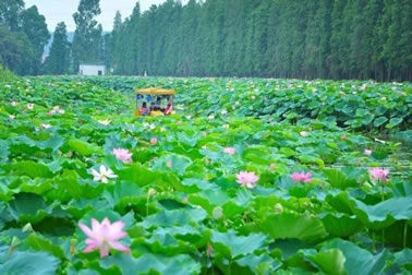 占地110畝呈長塘型的采蓮區(qū),營造出一條混合著人工與天然雕飾美于一體的“綠荷(河)”,風(fēng)過荷舉,蓮障千重。據(jù)統(tǒng)計,采蓮區(qū)在每年生長旺盛的7、8、9月間,每日可采摘優(yōu)質(zhì)蓮蓬約3000~5000個,蓮蓬果實飽滿,最大的蓮蓬直徑可達(dá)18厘米。游客至此,既可親身經(jīng)歷泛舟荷塘,放歌瀏覽蓮葉接天的大千氣勢,更可一嘗采蓮品蓮的田園野趣。