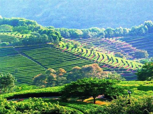 雁南飛茶田是飽蘸著祖國茶文化,在青山綠水間濃墨重彩揮灑而就的融茶葉生產(chǎn)、加工與旅游、度假于一體的山區(qū)“三高農(nóng)業(yè)”、“生態(tài)農(nóng)業(yè)”、“旅游農(nóng)業(yè)”的開放型旅游景區(qū),被譽(yù)為“現(xiàn)代農(nóng)業(yè)開發(fā)的成功范例”,梅州“三高農(nóng)業(yè)”開展的一個樣板和典范。雁南飛茶田在茶葉種植的同時結(jié)合了果樹的種植和園林綠化,大片的茶樹與龍眼、荔枝、芒果、枇杷等南國佳果、各式園林綠化景點相隔其中競相媲美。雁南飛茶田在科學(xué)種植的同時,采用傳統(tǒng)工藝結(jié)合現(xiàn)代高新技術(shù),精制出有獨(dú)特自然香型的雁南飛高級系列茗茶,并賦于濃厚的文化內(nèi)涵和高附加值,創(chuàng)造了名牌精品。雁南飛茗茶主要有:金單叢烏龍茶、自然香烏龍茶、金桂蘭烏龍茶、人參烏龍茶、金觀音烏龍茶、桂花烏龍茶,此外還有特制的茉莉花綠茶、映山紅紅茶等品種,適合不同品味的人士品茗。