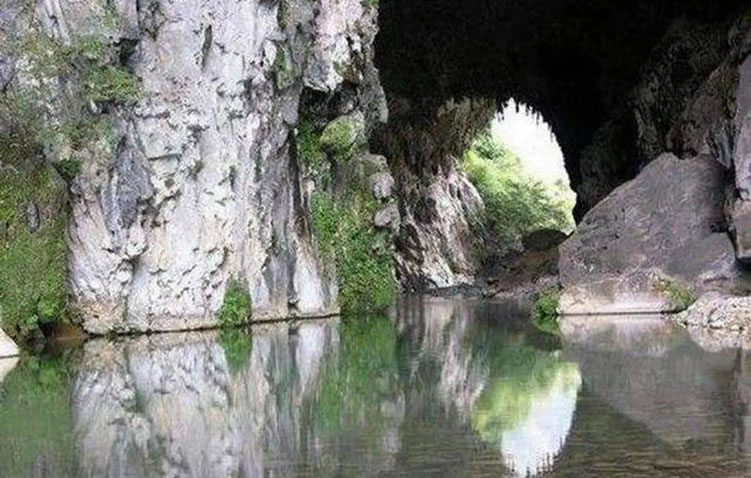 “周馬峽”位于流經(jīng)田林縣八桂瑤族鄉(xiāng)弄瓦村的馱娘江上,從六隆鎮(zhèn)的周馬屯上溯七八百米便到。又名“鴛鴦峽”,土名為“內(nèi)鉗”。“鉗”,壯語意為“陡峭”,又因其最險(xiǎn)處的江流一分為二,水窄約1米的右支稱“鉗布”(公),有礁石能通航;水寬達(dá)3米的左支稱“鉗牙”(母),可以通航。以水寬可以通航的一支為名,便叫“鉗牙峽”。峽長(zhǎng)1.5千米,兩岸石壁削立,最高處離水面約360米,左岸即為云南省地界?菟冢孀顚捥10多米,最窄處3米。
