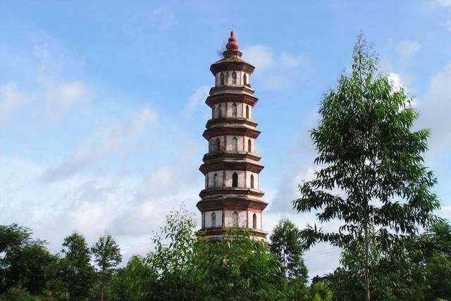 文昌塔位于合浦縣廉州鎮(zhèn)西南郊,為平面呈八邊形的仿樓閣式七層磚塔,高35米。塔基石砌,直徑10米,塔身青磚里外三層砌筑,底徑8.41米。占地面積79平方米。塔身逐層向內(nèi)收,每層高度依次有規(guī)則遞減;每層各有佛龕6個,風(fēng)門2個。