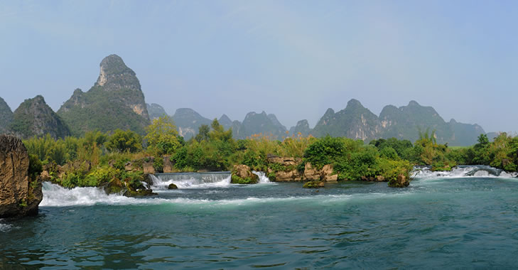 安平景區(qū)位于廣西大新縣雷平鎮(zhèn)安平村,距縣城25公里,距南寧165公里,景區(qū)內(nèi)山川秀麗,河流清澈,屬于典型的喀斯特地貌景觀。全長45公里的黑水河貫穿全境,隸屬左江支流,河的兩岸群山綿延,奇峰聳峙,層巒疊翠,青竹秀水,交相輝映,景色極為秀美。坐在游船上,不僅可以看到翠竹、綠樹叢中的村落,欣賞天水一色的田園風(fēng)光,還可以看到河岸邊的奇石、水中的島嶼,更令人興奮的是還可以觀賞到從上游一涌而下的大小瀑布和激流,感受大自然給予的恩惠。