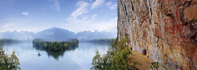寧明歷史悠久、山川秀麗,擁有中國第一處巖畫類世界遺產(chǎn)、廣西首個世界文化遺產(chǎn)——花山巖畫文化景觀,以花山巖畫為核心的駱越文化是壯族文化、嶺南民族文化和東南亞民族文化的同生共源。寧明旅游資源可概括為“三山四水十大景”:“三山”分別為花山、公母山、獅子山。其中,花山是文化圣山,公母山是橫跨中越兩國邊境的名山,獅子山是佛教名山。“四水”分別為明江河、派連河、公安河、浦下河。 “十大景”分別為荷城晨鐘、瀨江暮鼓、獨木成林、蓉峰夕照、東湖釣月、木州雙泉、珠連野渡、遷隆書院、永平古墓、邊關(guān)炮臺。近年來,寧明榮獲“全國文化先進縣” “中國最美鄉(xiāng)村旅游目的地”等系列稱號。