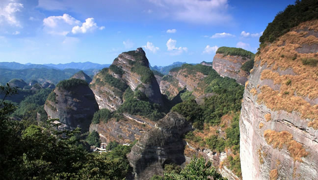 八角寨地處湘桂交界的、五嶺山脈里最長者越城嶺山脈(長達二百多公里)西北側(cè)的余脈(廣義崀山即以崀山為代表的跨越新寧縣和資源縣的整條山或大崀山),屬典型的丹霞地貌,有關專家譽為“丹霞之魂、國家瑰寶 ”,“中國最美的七大丹霞”之一。