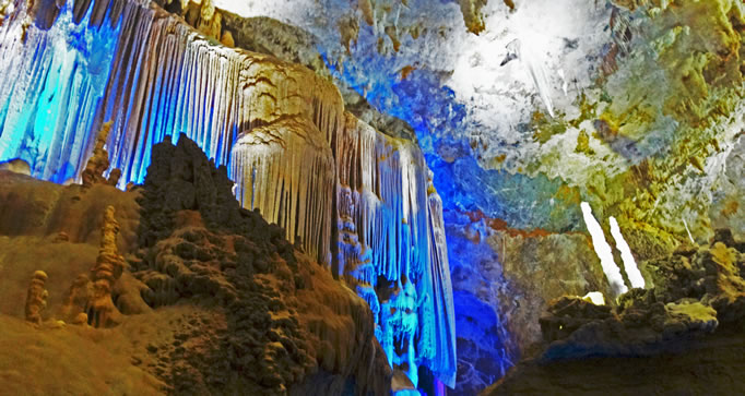 水晶宮以潔白純凈、密集分布的石毛發(fā)、卷曲石、石花等景觀為顯著特色,珍惜景觀。洞內(nèi)空氣負(fù)氧離子含量很高,達(dá)到每立方厘米36000-70000個(gè),為洞外的5-10倍。