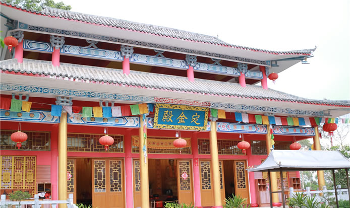 定金山禪寺位于定金山上,定金山禪寺由此得名。定金山禪寺是當(dāng)時(shí)田州周邊的一大名寺,在20世紀(jì)初土改時(shí)一度被撤。后又在60年代的“文化大革命”破“四舊”的政治運(yùn)動(dòng)中再度被毀。80年代后期,定金山禪寺由群眾集資再度重建。建成的定金山禪寺以其規(guī)模宏大、殿堂巍峨、道場清凈成為當(dāng)今巴馬的一座名寺,每逢農(nóng)歷的月初一和十五,定金山禪寺香客絡(luò)繹不絕,香火不斷,成為巴馬的一道獨(dú)特的旅游風(fēng)景線。