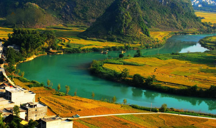 甲篆村在巴馬縣西北19千米處,甲篆鄉(xiāng)政府駐地,巴馬至鳳山公路經(jīng)此,盤陽河從距村址約2千米烈屯漠齋山的百鳥洞奔流而出,河灣斷續(xù),秀水瀠洄,兩岸奇峰峻巒,村屯錯(cuò)落。甲篆村美景曾令到此探索壽鄉(xiāng)之秘的國外專家考察隊(duì)和區(qū)內(nèi)外到此體驗(yàn)生活的文藝家們嘆為觀止,因而素享“小桂林”之美稱。坡開村還盛產(chǎn)油魚,這種體肥肉嫩身骨細(xì)軟,煎時(shí)香油四溢。