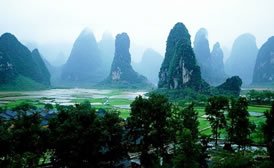 桂林市漓江景區(qū)區(qū)域地形特點是北、東、西部較高,為碎屑巖中低山地貌。北部是五嶺之一的越城嶺,最高峰貓兒山,海拔2142米;東部為北東一南西走向的海洋山,主峰寶界嶺海拔1936米;西部是南北走向的天平山和駕橋嶺,主峰海拔皆在千米以上。景區(qū)中部為漓江巖溶谷地,南北長120余公里,東西寬20一60公里,發(fā)育有巖溶侵蝕平原,峰叢洼地和峰林平原等地貌類型,是一個較完整的水文地質(zhì)單元。沿漓江分布有一系列的盆地。在溶蝕侵蝕平原和低地上,峭立著眾多的石峰并發(fā)育有大量的洞穴。從大圩以南的潛經(jīng)村開始,漓江進(jìn)入峰叢洼地的峽谷段,深切河谷相對高程達(dá)400余米,組成了綿延百里,馳名中外的巖溶山水畫廊。