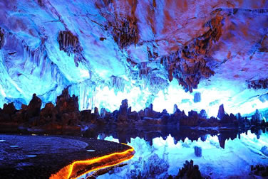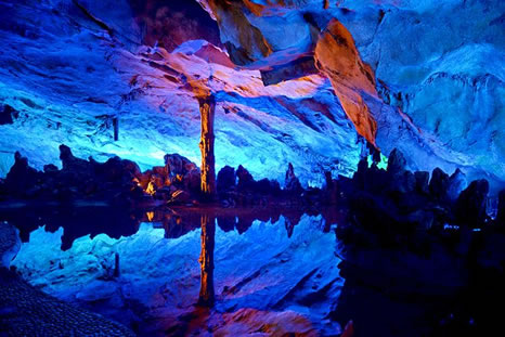 “桂林山水甲天下,蘆笛美景堪最佳。”蘆笛巖是桂林山水一顆璀璨的明珠,蘆笛巖位于光明山南側(cè)山腰,洞深240米,游程近500米,是一處景致高度集中、景物極盡造化的神奇游覽佳境。在這個奇妙的巖洞中,琳瑯滿目的鐘乳石、石筍、石柱、石幔、石花擬人狀物,惟妙惟肖,構(gòu)成了三十多處景觀,有“紅羅寶帳”、“高峽飛瀑”、“盤龍寶塔”、“原始森林”、“簾外云山”、“水晶宮”等,可謂移步成景,步移景換。整個巖洞猶如一座用寶石、珊瑚、翡翠雕砌而成的宏偉、壯麗的地下宮殿。