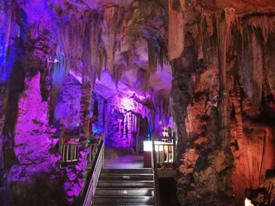 巖洞內(nèi)共分"石幔層林"、"天柱云山"、"水晶宮"以及"曲徑畫廊"四個洞天,有"獅嶺朝霞"、"高峽飛瀑"、"原始森林"、遠(yuǎn)望山城"、"盤龍寶塔"等20處景點(diǎn),被譽(yù)為"大自然的藝術(shù)之宮"。