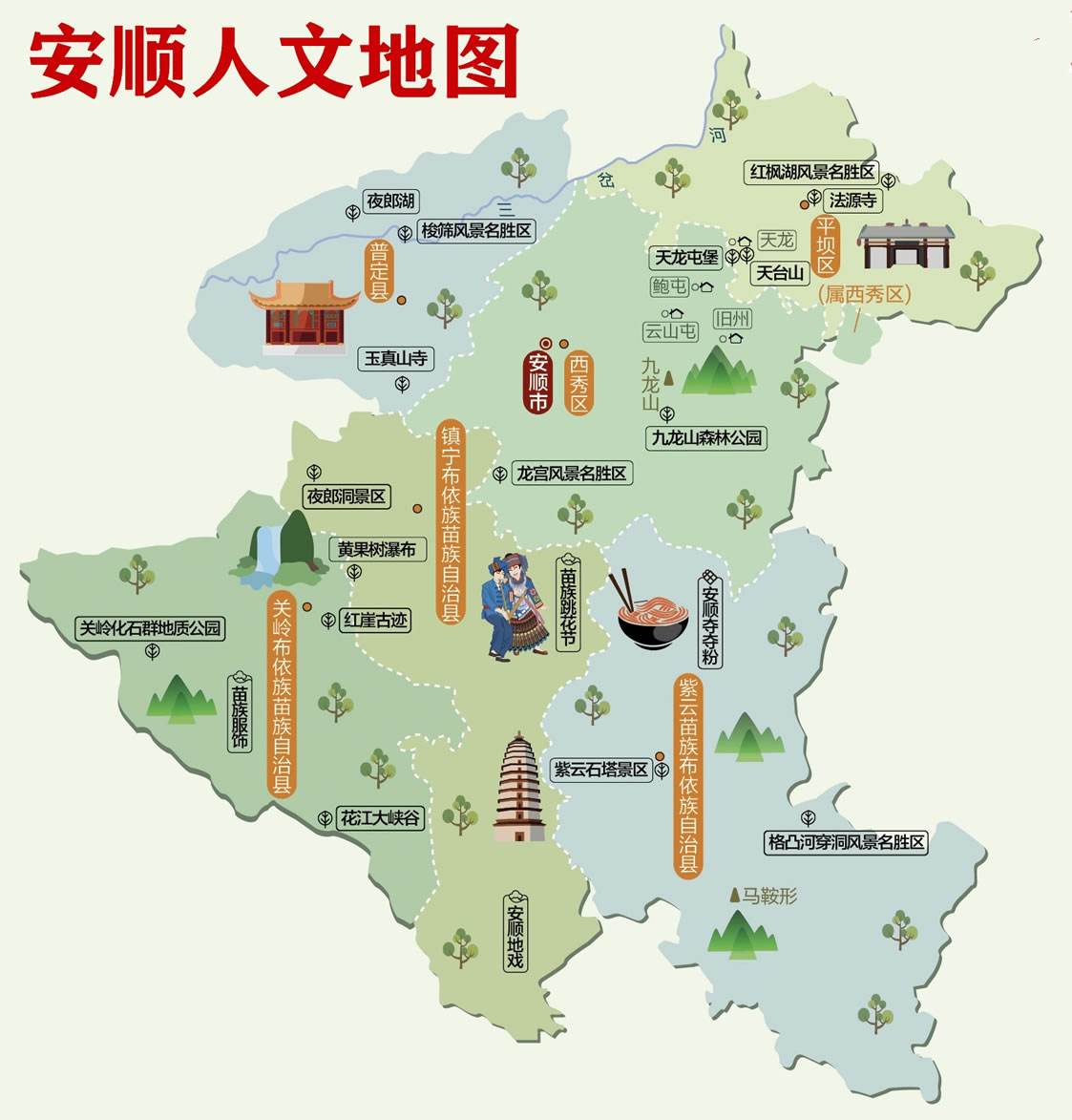 安順市轄2個(gè)區(qū)、4個(gè)縣: