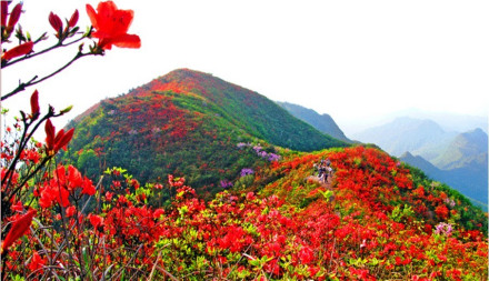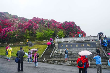 百里杜鵑風景名勝區(qū),冬無嚴寒,夏無酷暑,暖溫帶濕潤季風氣候,年平均溫度11.8°C,年降雨量為1150.4mm。生長在高海拔、低緯度的杜鵑花,暮春三月,竟相怒放,繁花似錦,姹紫嫣紅。