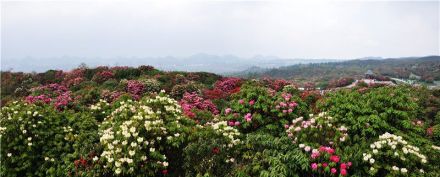 初步查明,百里杜鵑風景區(qū)有馬纓杜鵑、大白花杜鵑、水紅杜鵑、露珠杜鵑等41種,占世界杜鵑花5個亞屬中的全部;ㄉ鄻,絢爛生輝。每年3月到5月次第開放,百里花山色彩繽紛,猶如廣袤的錦緞華章鋪山蓋嶺,百態(tài)千姿。被譽為“地球彩帶、世界花園”。