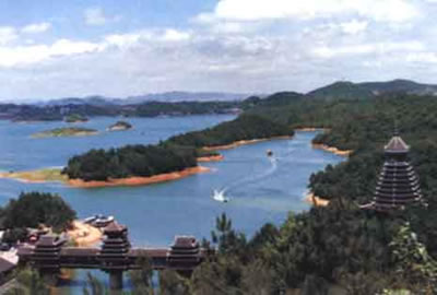 貴州國(guó)家級(jí)風(fēng)景名勝區(qū)之一的紅楓湖風(fēng)景名勝區(qū)是連貴州本地人都十分愛去游覽的地方,它不僅僅因它的湖泊面積大更因它的湖上星羅棋步的小島而吸引著本地的外地的游客。它的水域總面積為57.2平方公里,蓄水量可達(dá)6億立方米,為貴州高原人造湖之最,據(jù)專家考證出來的數(shù)據(jù)顯示,紅楓湖比北京的十三陵水庫(kù)大12倍,相當(dāng)于6個(gè)杭州西湖。