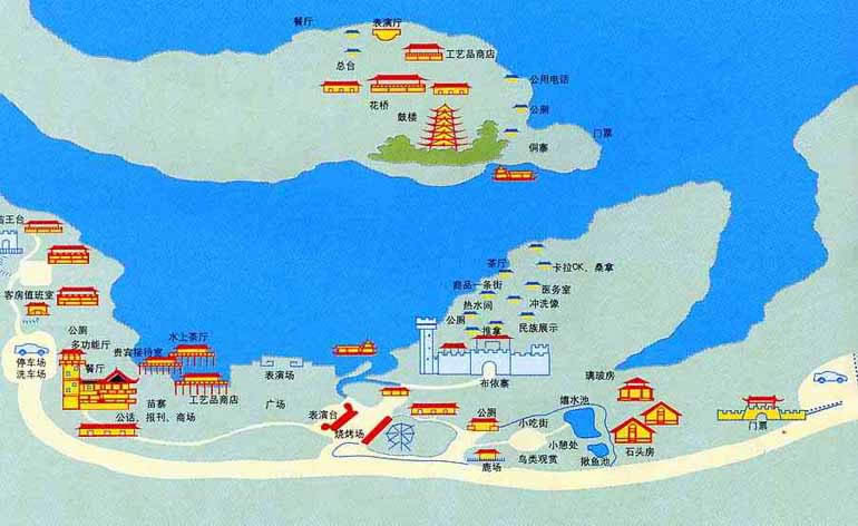 民族村不僅薈萃了大西南16個(gè)民族的原始風(fēng)俗表演,而且還從全國(guó)各地引進(jìn)雜技馬戲、珍奇猛獸馴化表演等等。每周還舉辦一次“土風(fēng)狂歡夜”,各民族的歌舞在這里各領(lǐng)風(fēng)騷,令游人大開眼界。\