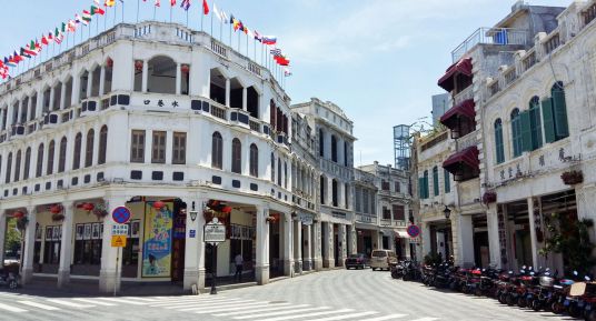 主要分布于?谑袇^(qū)的得勝沙路、文明東路、中山路、博愛路、長堤路等幾條老街區(qū),是?谑幸惶幾罹咛厣慕值谰坝^,其最古老的建筑四牌樓始建于南宋,已有700多年歷史。2009年6月10日,在由國家文化部和國家文物局主辦的首屆“中國歷史文化名街”評選推介活動(dòng)中,騎樓老街憑借其極富中西特色的建筑風(fēng)格和歷史風(fēng)味的文化底蘊(yùn)榮獲首批十大“中國歷史文化名街”稱號(hào)。