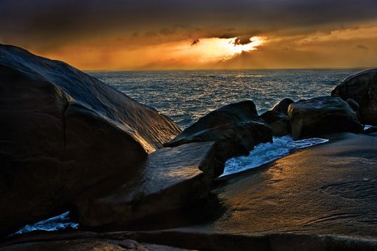 文昌石頭公園位于海南省文昌市龍樓鎮(zhèn),以銅鼓嶺為中心,是海南的最東角,公園沿海長2公里,是數(shù)萬年前造山運動隆出地表的石頭,經(jīng)漫長歲月潮汐的拍打雕刻和風(fēng)化而成的海蝕地貌。這里屬于基巖海岸,巖石為花崗巖,花崗巖內(nèi)有變質(zhì)巖侵入體,許多巖石中有很多漂亮的條紋和圖案,地貌類型為海蝕地貌,具體表現(xiàn)為海蝕平臺、海蝕崖、海蝕柱、海蝕穴等。