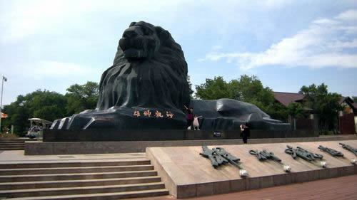 氣焰澎湃的雄獅觀海雕塑,長21米,高10米,是我國當(dāng)前最大的單體獅雕,建立投資100萬元,被稱為“百萬雄獅護(hù)大!保鼩鈩輿皼暗鸟v守在金色的沙岸,好像守望著碧藍(lán)的大海,維護(hù)著旅客的平安,企盼著景區(qū)的輝煌前景。