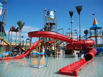 寶貝水城:小孩子的玩水樂(lè)園、歡樂(lè)的造夢(mèng)空間。典型設(shè)備包括蝴蝶滑梯、青龍滑梯、鱷魚滑梯等設(shè)備,還有蝸牛號(hào)、椰果派、水風(fēng)車、向陽(yáng)花、七彩蘑菇、彩虹門、三色花、鳥語(yǔ)花香、小妖精等可噴水可觀賞的童趣水景。寶貝水城色彩鮮艷,設(shè)施眾多,小孩們可以盡情嬉戲玩耍,激發(fā)兒童無(wú)窮的想象力和創(chuàng)造力。