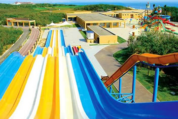 水樂(lè)園1期:超級(jí)大喇叭、高速滑道、六彩滑梯、寶貝水城、螺旋敞開滑梯、巨獸碗、沖天大回環(huán)。
