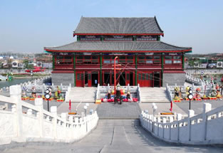 盛樂坊:“盛樂”取自《禮記.月令》,命有司,為民祈祀山川百源,大雩(yu)帝,用盛樂!蚌А,是古代的一種祭禮,說的是古代每到夏季的第二個月,用盛大的舞樂隊伍祭祀天地及山林川澤之神,祈求風調(diào)雨順,五谷豐登,具有節(jié)日的氣氛。這個牌坊與對岸的大戲樓遙相輝映。