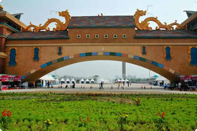 東方神龍樂園位于運河唐人街西側(cè),占地面積1000畝,計劃總投資15.1億元,目標是達到國家5A級景區(qū)標準。該項目由韓國旅游開發(fā)研究院策劃設(shè)計,整體設(shè)計中涵蓋著四個“世界第一”,體現(xiàn)了景區(qū)規(guī)劃設(shè)計的前瞻性、高端性,規(guī)劃設(shè)計了世界上最高的景觀樹、最快的過山車及角度最小速度最慢的過山車。東方神龍樂園深入挖掘中華民族“龍”的文化主題,并運用現(xiàn)代高科技手段,編導(dǎo)獨具特色的大型演藝節(jié)目,打造中華民族龍文化產(chǎn)業(yè)園,給游人以強烈的視覺震撼。該項目設(shè)計包括冒險森林、彩虹樂園、天方夜譚、火山公園、冰河時代等景區(qū)百余項娛樂項目。規(guī)劃設(shè)計中,70%以上的娛樂項目均設(shè)在室內(nèi),進而彌補了北方冬季部分旅游活動項目不能開展游人稀少的缺陷。