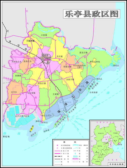 樂(lè)亭縣臨港產(chǎn)業(yè)聚集區(qū):樂(lè)亭縣臨港產(chǎn)業(yè)聚集區(qū)地處環(huán)渤海經(jīng)濟(jì)中心區(qū)域的京唐港區(qū)腹地黃金地帶,西距河北省“一號(hào)工程”——曹妃甸工業(yè)區(qū)僅40公里。2008年12月,被批準(zhǔn)為首批省級(jí)產(chǎn)業(yè)聚集區(qū)之一,規(guī)劃面積約120平方公里,同時(shí)被確定為循環(huán)經(jīng)濟(jì)示范試點(diǎn),正在成為樂(lè)亭新興產(chǎn)業(yè)的發(fā)展高地和新型工業(yè)化的重要平臺(tái)。