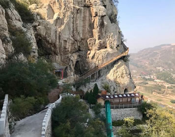 天梯山系太行山脈,海拔雖說(shuō)只有500多米,但山不在高,奇特則名。遠(yuǎn)看此山平平常常貌不驚人,近前才知與眾不同確有奇特之處。說(shuō)其奇,奇就奇在該山古洞群聚,洞套洞洞連洞別有洞天;說(shuō)其特,特就特在該山怪石嶙峋形貌各異,壁立千仞宛若刀劈,登山臺(tái)階陡立向上,好像一架梯子高倚云天,其險(xiǎn)要之勢(shì),奇特之狀令人交口贊絕。